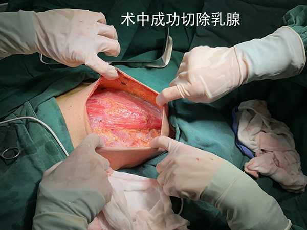 手术由普外科副主任医师李华志和主治医师佟凡携手完成。鉴于患者体型瘦弱,加之左乳肿瘤已逾一年未接受治疗,其直径已增至5厘米。麻醉科主治医师杜鹃在术前为患者量身定制了神经阻滞麻醉方案。得益于手术团队的高超技艺与完美协作,患者顺利完成了根治性手术,并在术后第二天顺利出院。