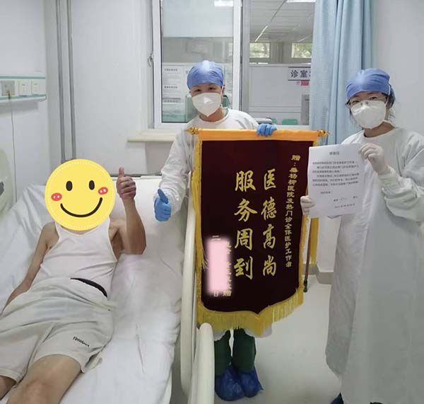 这位老人近日因发热前来就诊。经过三天的输液治疗后改为口服药物,再三天后复查显示恢复良好。在整个诊疗过程中,清华大学附属垂杨柳医院感染性疾病科(发热门诊)医护人员始终秉持“以患者为中心”的服务理念:护士主动为老人测量血压,减少走动;医生们会特意放慢语速,耐心解释病情;工作人员会不时去病床前关心问候;会帮忙寻找车位,方便家属照顾老人。这些看似微小的举动,却让老人和家属倍感温暖。于是,老人将自己的感激之情化作一面锦旗和一封表扬信,送到了医护人员手中。