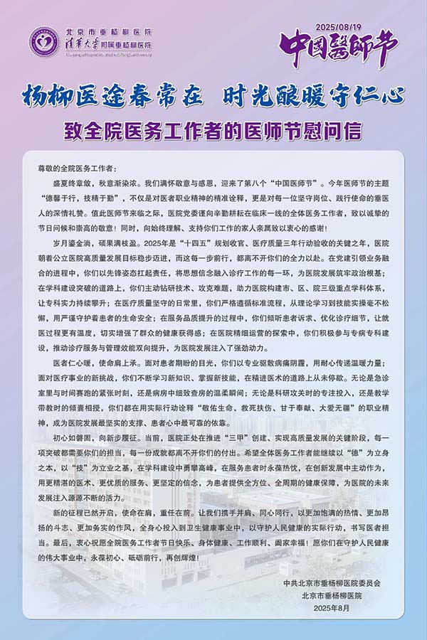 【8·19医师节特辑】杨柳医途春常在,时光酿暖守仁心——致全院医务工作者的医师节慰问信