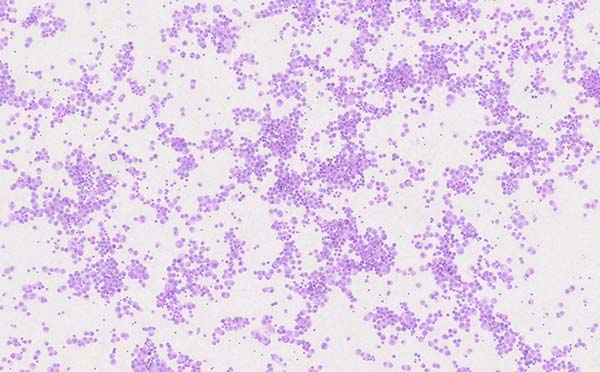 患者男性,76岁,因受凉后出现咳嗽、咳痰,伴咽痛、咳白痰就诊于清华大学附属垂杨柳医院呼吸与危重症医学科门诊,后入院治疗。在对症治疗后患者自觉憋气,夜间不能平卧,无明显少尿、下肢水肿。胸部CT示:右侧胸腔积液伴右肺下叶膨胀不全。临床抽取适量胸水送至病理科做细胞涂片检查。