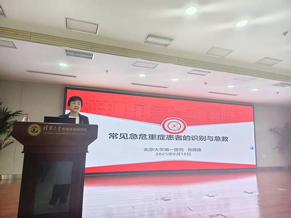 为进一步提升护理人员对急危重症患者的早期识别与应急处置能力,保障患者安全,2025年8月18日下午,我院护理部特邀北京大学第一医院急诊科总护士长,北京护理学会急危重症护理专业委员会副主任委员张建霞来院开展《急危重症患者早期识别与护理应对》专题培训。全院各护理单元护士长、护理骨干及新入职护士、进修、实习人员共计106人参加了此次培训。