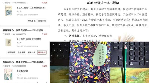 “书非借不能读也”,这话就是说的我,平时买的书,都是整齐的放在书架上,偶尔随手翻一翻,很少能一口气读完。最近医院推出了“书香沁医心,悦读促成长”的读书活动,我的心就像被轻轻拨动的琴弦,泛起了悸动的涟漪,迫不及待地就想借几本书来,好好滋养一下自己的心灵。