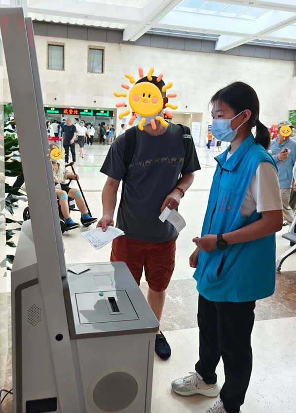 他们主动上前询问患者需求,耐心讲解“先在报道机扫码,等待叫号再取药”的流程;面对老年患者或操作不熟练的患者,更是手把手协助完成报道操作。即便需要重复讲解相同流程、在人群中往返穿梭,志愿者们始终保持微笑与耐心。当看到患者在引导下顺利报道、有序取药,听到一句句“谢谢”的肯定,他们更坚定了做好志愿服务的决心,用实际行动为患者就医体验“加分”,为医院新取药叫号系统的顺畅运行保驾护航。