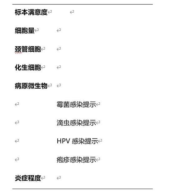 清华大学附属垂杨柳医院病理科TCT报告模板包括:
