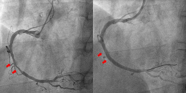张先生2025年4月28日因劳累时胸闷就诊于清华大学附属垂杨柳医院心内科,入院后拟择期完善冠脉造影检查评估冠脉。然而术前检查中血常规项目中的轻度贫血及便潜血阳性引起了管床医生的警惕。消化内科会诊认为患者贫血原因需考虑消化道出血导致可能,因患者存在抗血小板类药物使用相对禁忌,遂决定暂停抗血小板类药物使用,为消化内科内镜检查做准备,同时放弃冠脉造影检查并改为完善冠脉CTA检查初步评估冠脉。然而检查结果却不容乐观,冠脉CTA提示张先生冠状动脉多发中-重度狭窄。消化内科与心内科共同评估病情后决定先行胃镜检查,病理结果显示低分化腺癌。需要限期手术,但是合并冠状动脉严重狭窄外科围术期发生急性心血管事件风险极高。而冠心病治疗需使用抗血小板类药物,冠脉介入治疗术中需使用抗凝药,患者消化道出血风险也很高。心内科团队及普外科团队经共同讨论后制定了治疗方案:先由心内科处理冠脉病变,之后由普外科尽早完成切除胃部肿瘤。冠脉造影结果显示:右冠脉严重狭窄。考虑到患者需要尽快接受外科手术,心内科冠脉介入团队讨论后决定应用新型药物涂层支架干预右冠脉(可减少术后双联抗血小板时间至最少1个月)。经1个月双联抗血小板治疗后,经麻醉科、心内科、普外科再次评估后,于2025年6月24日由普外科完成腹腔镜下肿瘤切除术。