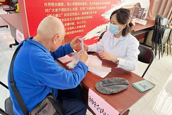 运动医学与关节外科(骨二科)副主任医师郭保逢针对老年人常见的颈椎病、膝骨关节病、膝关节置换术后的康复锻炼等问题进行个性化的健康指导和预防建议;介入与血管外科主治医师满新贺就下肢静脉曲张、动脉硬化等血管健康隐患作详细解答;血液科(肿瘤内科)主治医师李宁宁对老人们手中的血常规化验单提示的贫血、血小板减少等异常指标,对可能的常见的血液系统疾病病因进行了科普;微创肝胆外科主治医师贾凡就部分老人体检发现的胆囊息肉、肝囊肿、肝钙化灶等疾病做了详细耐心讲解,强调了定期体检和复查的重要性;神经内科副主任医师张伶君对高血压、睡眠障碍、情绪障碍、脑梗死二级预防药物相关问题给出了专业的建议。神经内科(9D)护士长梁志青及神经内科主治医师赵伟杰为老人们提供免费测量血压的服务,并协助发放各科室健康科普手册。