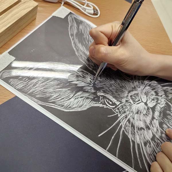 活动现场,指导老师以“教程讲解+实操示范”的方式,先详细拆解手工刻画的技巧、小夜灯制作步骤及工具使用安全要点,随后穿梭在各小组间巡回答疑,针对刻画力度、线条流畅度等问题给予针对性指导,帮助大家更好地还原画稿风貌,原本普通的材料在大家的细致刻画与组装下,逐渐蜕变为图案精美、兼具实用性的小夜灯成品。创作过程中,来自不同科室的青年职工打破工作壁垒,增进了解、拉近距离,充分展现了医院青年团结协作、认真细致的精神风貌。本次活动的成品由参与者装点书桌、窗台为生活增添暖意,或赠予患者传递医疗温情,让手工创作的温暖持续延伸。