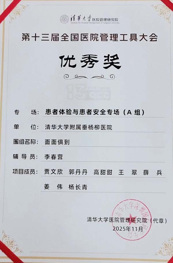 2025年,呼吸与危重症医学科护理团队凝心聚力、锐意进取、奋勇争先,深耕呼吸专科优质护理服务内涵,持续夯实护理质量与安全,护理工作成效显著、硕果斐然。科室2名护理人员凭借扎实的专业素养、优良的职业素养及突出的工作业绩,分别荣获清华大学医学院紫荆奖-优秀护士荣誉称号;在护理部李主任指导下申报的护理项目《面面俱到》在第十三届全国医院管理工具大会患者体验与患者安全专场评选中脱颖而出,斩获优秀奖。全体护理人员以榜样为引领,用专业实力与责任担当践行初心使命,充分展现了呼吸与危重症医学科护理团队过硬的业务能力与良好的精神风貌,切实以优质护理服务守护患者健康。