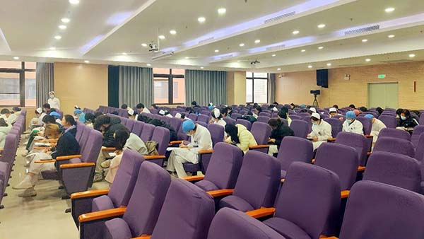 本次考核秉持科学、严谨、公平公正原则,构建理论与实践结合的考评体系。理论考核紧扣护理“三基”核心,融入护士资格证考试高频考点,采用闭卷笔试形式,全程规范管理。此次考核既是对实习阶段学习成果的全面复盘,也为实习生后续备战护士资格考试搭建了实战演练平台。技能操作考核围绕心肺复苏、静脉输液两项临床核心技能,评委严格遵照临床护理操作标准,从操作流程、无菌观念、人文关怀等方面逐项评分。实习生们精神饱满、操作娴熟,规范完成各项实操,展现出良好的临床实操能力与职业素养。