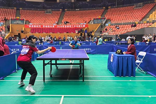 2026年4月18日-19日,由北京市总工会联合市体育局主办的“奋进新时代,劳动创未来”2026年首都职工乒乓球比赛在工人体育馆举行。本届比赛吸引了近千名来自全市各行业职工乒乓球爱好者参与,比赛竞争异常激烈。北京市垂杨柳医院工会委员会派出了楚德国、王俊文、陈岚、张颖、郭政、王磊、芦文彬、焦阳、林鑫共九名同志组成医院代表队,分别参加了混合团体、男子单打,女子单打的比赛。