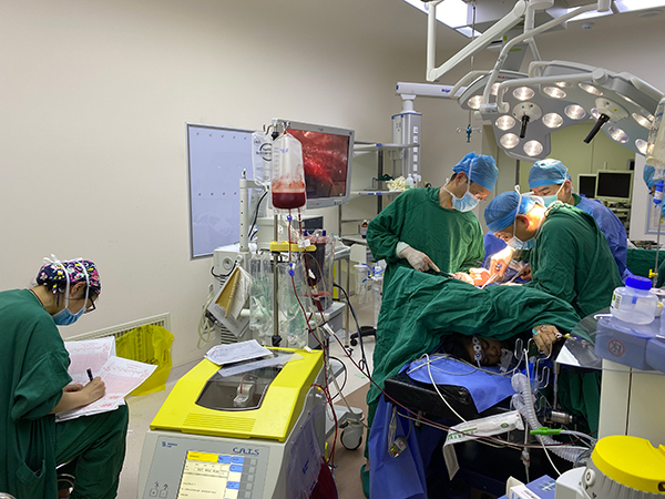 病情就是命令,抢救工作立刻全面铺开。胸外科主任崔健、副主任医师胡晓丹、医师赵云闻讯也纷纷赶回医院。随后,在崔健的指挥下,胸外科全体医生有条不紊,分工合作:联系相关科室二线会诊;联系手术室准备急诊手术;联系血库备血;向患者家属交代病情……随着急危重症抢救命令的,医院胸外科、麻醉科、心外科等相关临床科室和检验、放射、心脏超声等医技科室立即进入战备状态,纷纷为抢救患者亮起生命的“绿灯”,并积极开展急诊手术准备。