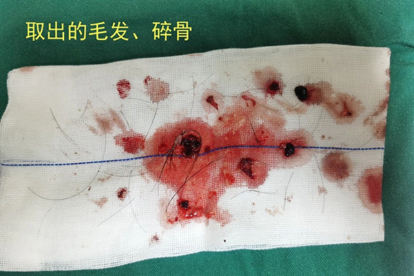 术中,张锟利用显微神经外科技术,从患者脑组织内摘除10余块大小不一的碎骨片及皮肤组织、毛发等异物,并充分消毒处理。由于手术抢救快速、高效,患者术后即恢复意识,并平稳度过脑水肿期及颅内感染关,恢复良好。患者家属在赶到医院后,也对医院救死扶伤的精神及高超的手术技术给予了高度赞扬。