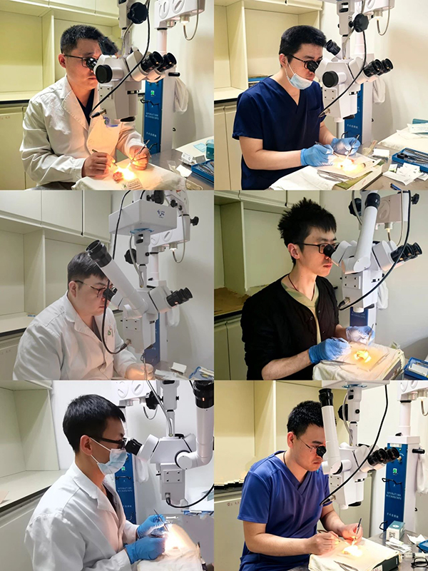 为了掌握成熟的超级显微外科技术,为了更好的服务患者,手足外科(骨三科)的训练室里摆放着各种显微器械。显微镜下,医师们在模拟的血管和神经上进行缝合,一遍又一遍,不断调整手法、力度和角度。练习的过程枯燥且艰辛,长时间保持同一姿势,眼睛紧盯显微镜,即便脖子和肩膀酸痛不已,眼睛也布满血丝,也从未有过一丝懈怠。