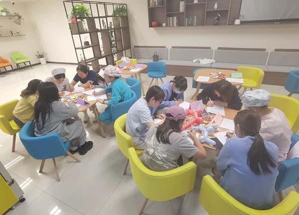 活动筹备环节充满温情,护理部准备了各类物品,增添现场活跃的气氛;临床心理科准备了色彩丰富的开班名牌卡纸,让大家自由挑选心仪的颜色,写下自己的名字,一张张独特的名牌成为彼此认识的纽带。现场点缀的彩色气球,更让温馨的咖啡厅充满了归属感。
