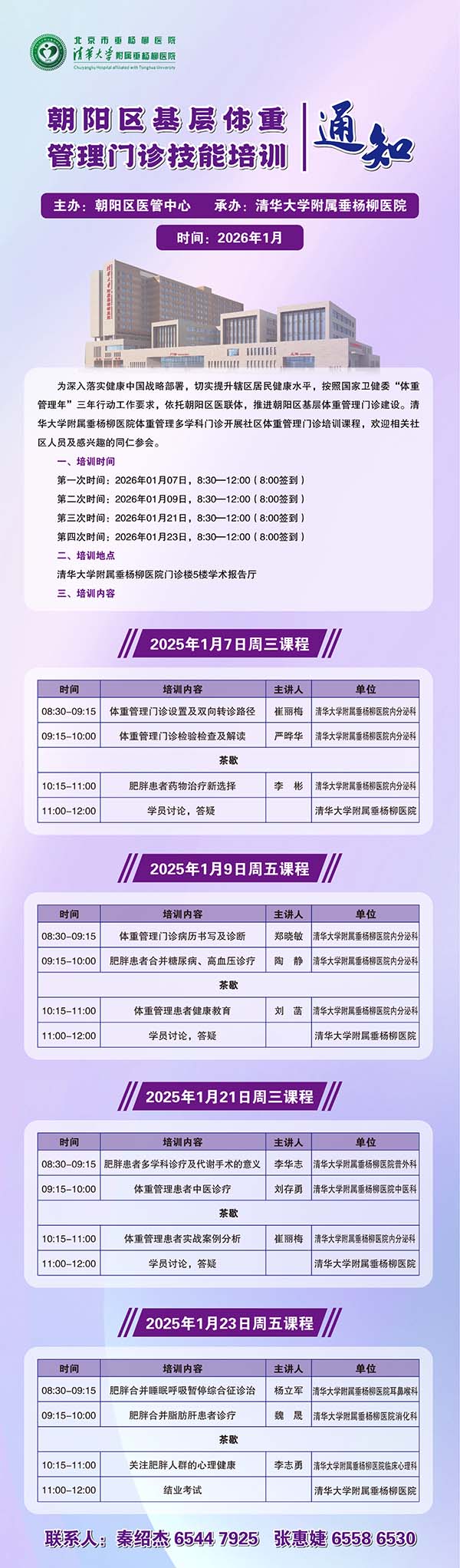 【会议预告】关于举办朝阳区基层体重管理门诊技能培训的通知