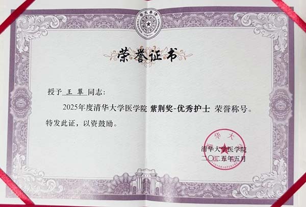 2025年,呼吸与危重症医学科护理团队凝心聚力、锐意进取、奋勇争先,深耕呼吸专科优质护理服务内涵,持续夯实护理质量与安全,护理工作成效显著、硕果斐然。科室2名护理人员凭借扎实的专业素养、优良的职业素养及突出的工作业绩,分别荣获清华大学医学院紫荆奖-优秀护士荣誉称号;在护理部李主任指导下申报的护理项目《面面俱到》在第十三届全国医院管理工具大会患者体验与患者安全专场评选中脱颖而出,斩获优秀奖。全体护理人员以榜样为引领,用专业实力与责任担当践行初心使命,充分展现了呼吸与危重症医学科护理团队过硬的业务能力与良好的精神风貌,切实以优质护理服务守护患者健康。