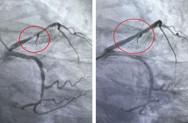 其中,31岁的关先生因恶心、呕吐等消化道症状就诊,经检查确诊为心肌梗死,急诊冠脉造影提示右冠脉闭塞。团队迅速启动绿色通道,及时开通梗死相关血管并植入支架,患者转危为安。