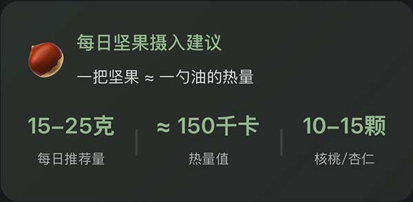 黄金搭配:混搭更佳—— 不要只吃一种,将核桃、杏仁、花生等混合食用,营养更均衡,也能避免单一品种摄入过量。