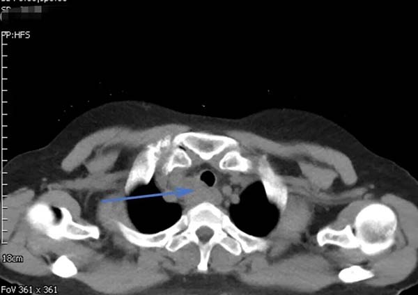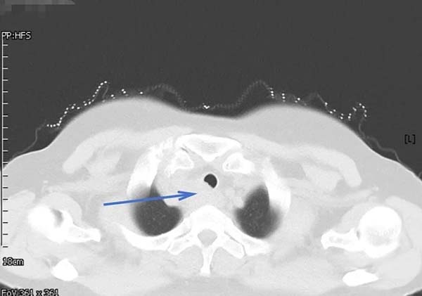 62岁的郑女士近一月来进食时总有食物下咽不畅感,伴有明显哽咽。当地医院胸部增强CT提示食管上段有一约3.7×2.6CM占位性病变,影像报告“不除外食管癌,且可能累及气管后壁”。随后的PET-CT更显示该病灶糖代谢异常增高,代谢活性值高达14.4,强烈指向恶性肿瘤可能。这一系列检查结果让患者及家人陷入焦虑与恐惧。