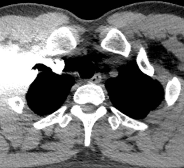 增强CT在高速团注时应优先选择血管条件好、管径粗、伪影少、路途短的血管快速注射对比剂完成循环。大多数人右上肢血管管径粗、走行直,没有太多的弯曲,对比剂经头臂静脉直接进入上腔静脉的路程短且通畅。