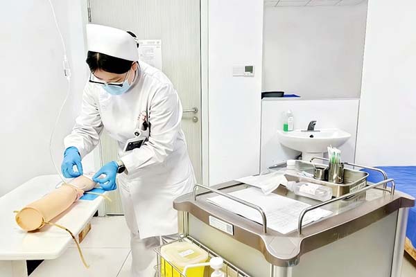 本次考核秉持科学、严谨、公平公正原则,构建理论与实践结合的考评体系。理论考核紧扣护理“三基”核心,融入护士资格证考试高频考点,采用闭卷笔试形式,全程规范管理。此次考核既是对实习阶段学习成果的全面复盘,也为实习生后续备战护士资格考试搭建了实战演练平台。技能操作考核围绕心肺复苏、静脉输液两项临床核心技能,评委严格遵照临床护理操作标准,从操作流程、无菌观念、人文关怀等方面逐项评分。实习生们精神饱满、操作娴熟,规范完成各项实操,展现出良好的临床实操能力与职业素养。